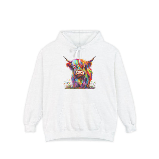 Rainbow Highland Cow - Unisex Garment-Dyed Hoodie