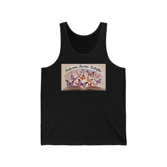 Bookworms Become Butterflies Unisex Jersey Tank Top - Vibrant Colors, Reading